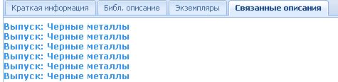 В закладке "Связанные описания" представлена информация о томах для многотомных